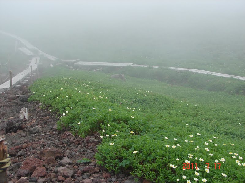 写真では緑色の山々が美しく紹介されていましたが、今日はガスで全くダメでした。冬は田沢湖スキー場から八合目まで雪上車で行けるので、そこからスキーでと考えてもいたのですが夏に登りました。